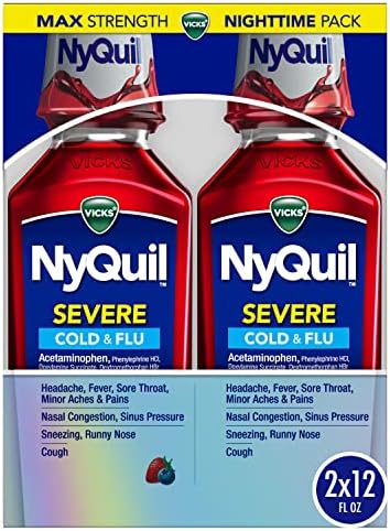 Amazon Com Vicks Nyquil Severe Cold Flu Liquid Berry Flavored Medicine Max Strength Nighttime Relief For Fever Sore Throat Minor Aches And Pains Nasal Congestion Sneezing Cough Twin Pack 2 X 12